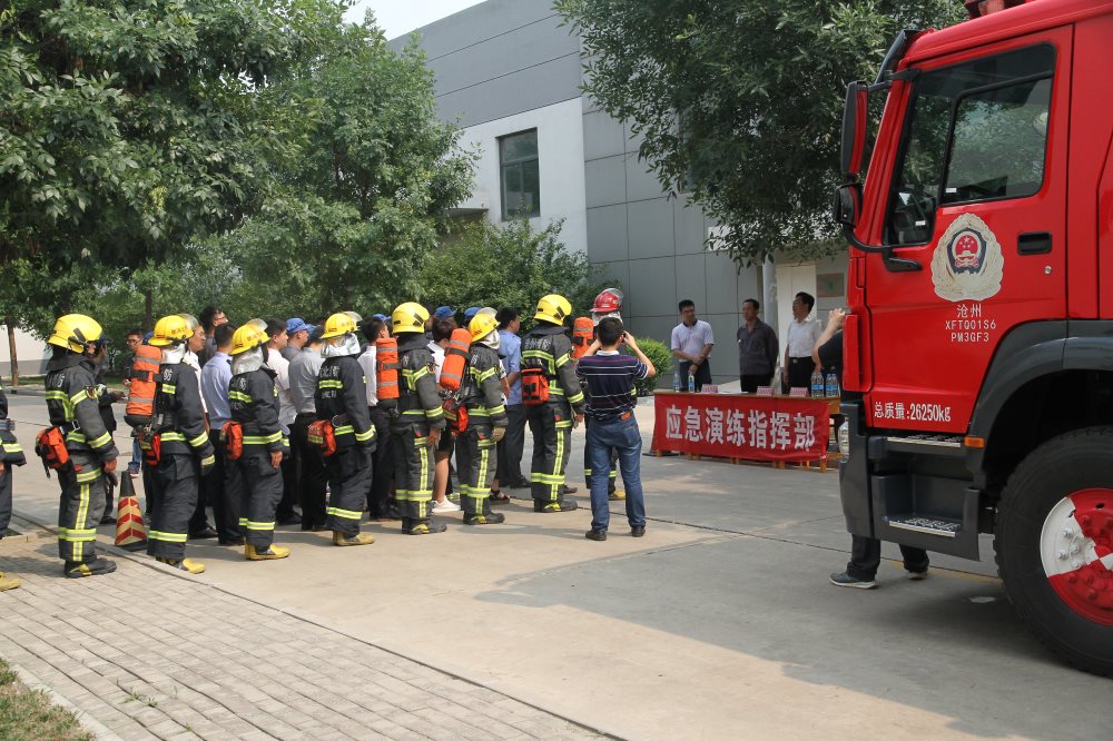 演习过程中,全体演习员工严肃认真,服从指挥,没有发生推、拉、拥、挤现象。集合完毕后,各应急小组迅速向集合地点的现场指挥部进行了汇报,高新区安监局局长曹吉晔对此次消防演练进行了总结发言,对我公司的此次演练给予了高度评价。至此,消防演习圆满结束。