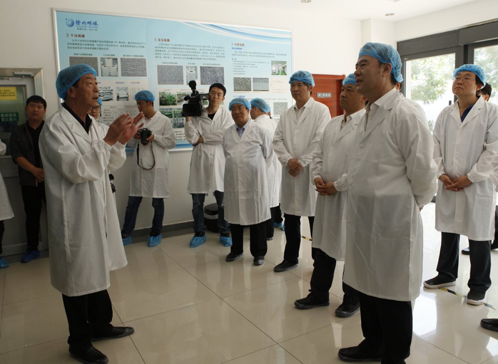 李谦副省长一行进入隔膜生产车间进行实地考察调研,咨询了隔膜产品的生产原理和生产工艺流程。李副省长对明珠隔膜项目的发展给予充分的肯定和褒奖,对企业长期坚持科技创新、致力自主研发的做法给予高度的肯定!